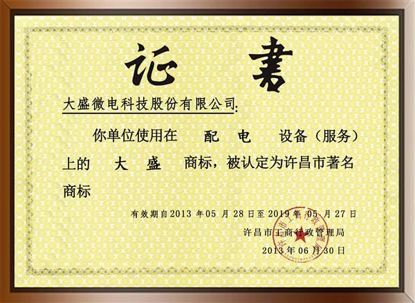 大盛-著名商標(biāo)認(rèn)定證...
