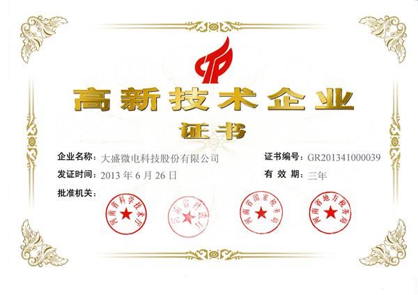 高新技術(shù)企業(yè)證書