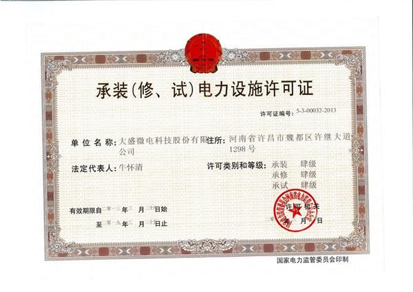 承裝電力設(shè)施許可證書